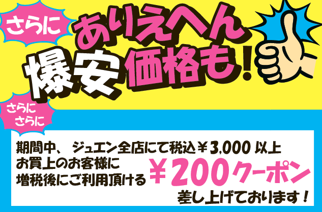 増税前のお買得★ズバリ価格★大得市&ありえへん爆安コーナー出現!増税後もお得なクーポン発券中! ※終了しました。