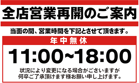 引き続き、状況を鑑み 調整を行いながらの営業とさせて頂きます。