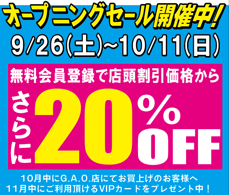 会員様割引10%+VIP10% セール割引20%+VIP10%・・・・凄いです!