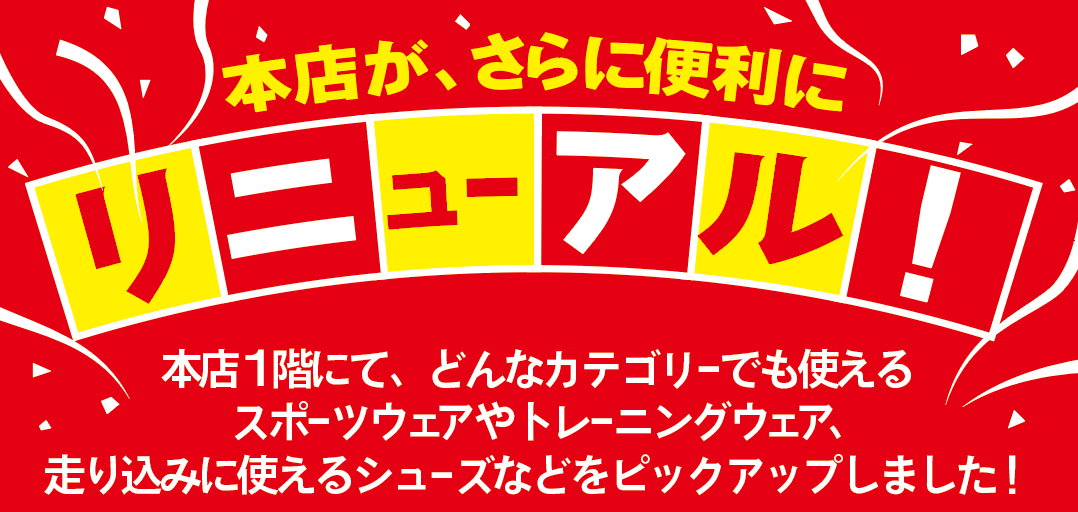 スポーツでも、普段着でも、使えるウェアなどを取り揃えておりますので