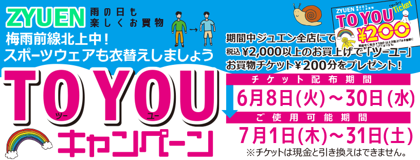 雨の日も楽しくお買物!ジュエンで買うとちょっとお得な「ツーユー」キャンペーン開催致します