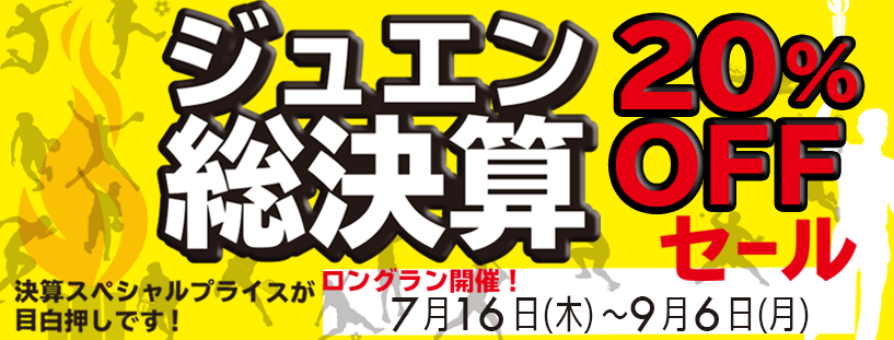7/16(金)~9/6(月)【スポーツジュエン総決算!20%OFFセール★スポーツの祭典スペシャル】