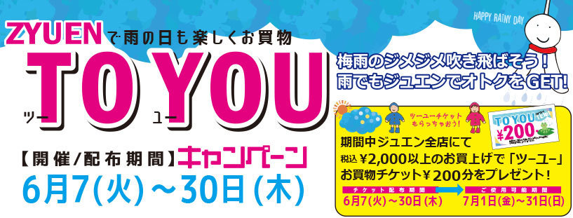 6月はTO YOUクーポンで雨の日も嬉しいジュエンへGO!
