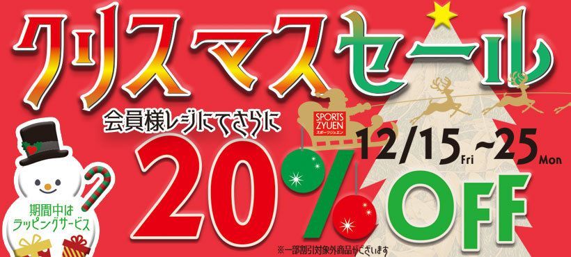クリスマスセール 2023!会員様レジにて20%OFF
