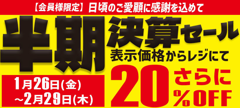 【半期決算セール】レジにて20%OFF!