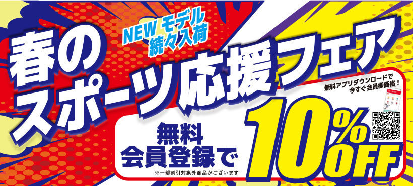 春のスポーツ応援フェアのお知らせ「会員様は10%OFF」