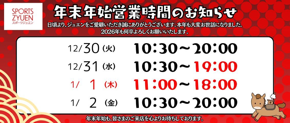 【年末年始営業時間のお知らせ】